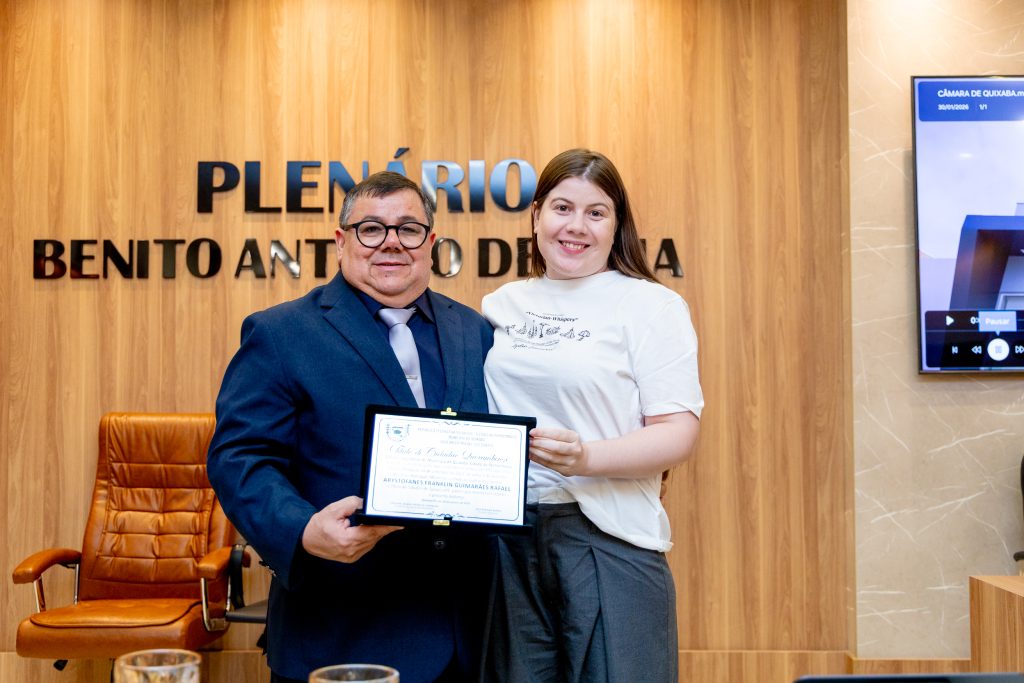 Após a cerimônia de inauguração realizada na noite desta sexta-feira (30/01), a Câmara de Vereadores de Quixaba realizou a primeira sessão solene no novo prédio, marcada pela entrega de títulos de Cidadão Quixabense a personalidades que contribuíram e contribuem de forma significativa para o desenvolvimento do município. A cerimônia foi presidida pela presidente da Casa, a vereadora Jodilma Lacava.